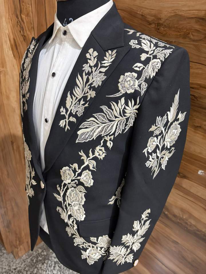 ชุดทักซิโด้แต่งงานสำหรับผู้ชายปักลายดอกไม้สีดำ – เสื้อเบลเซอร์สำหรับเจ้าบ่าวสำหรับงานปาร์ตี้และงานพรอม