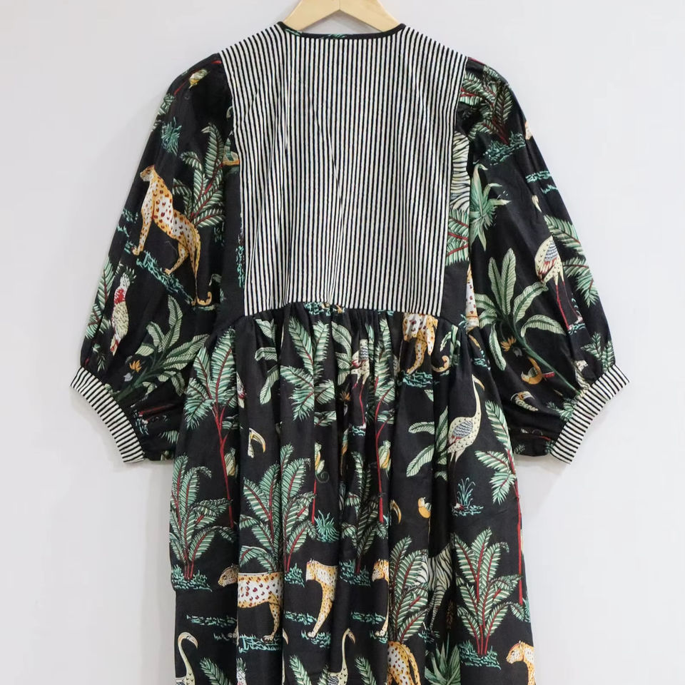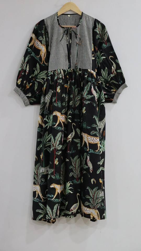 ชุดเดรสยาวลายดอกไม้สีดำ ผ้าฝ้าย 100% สไตล์โบฮีเมียน ธีมป่า สำหรับผู้หญิง ทำมือ ชุดฤดูร้อน ฤดูใบไม้ร่วง เอวเข้ารูป