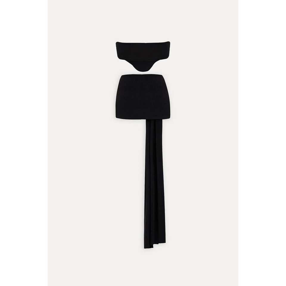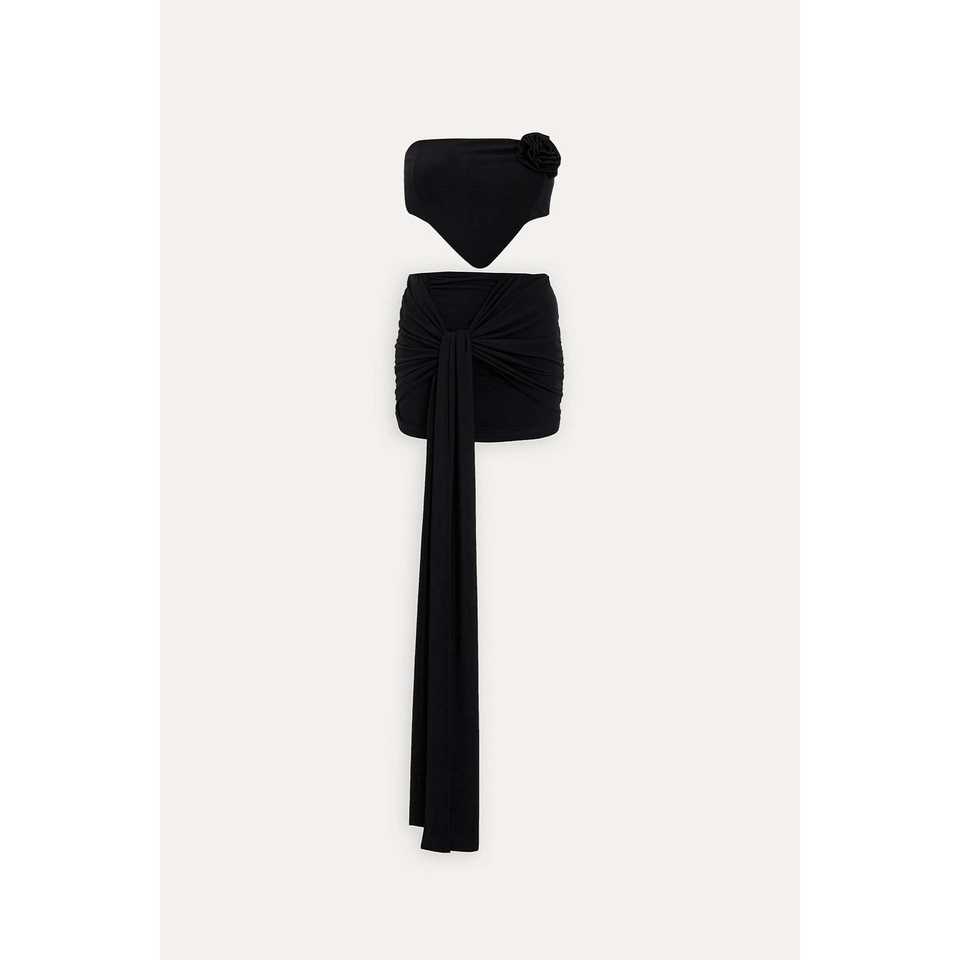 ชุดสูทสีดำแบบทางการพร้อมกระโปรงตกแต่งกระดุม