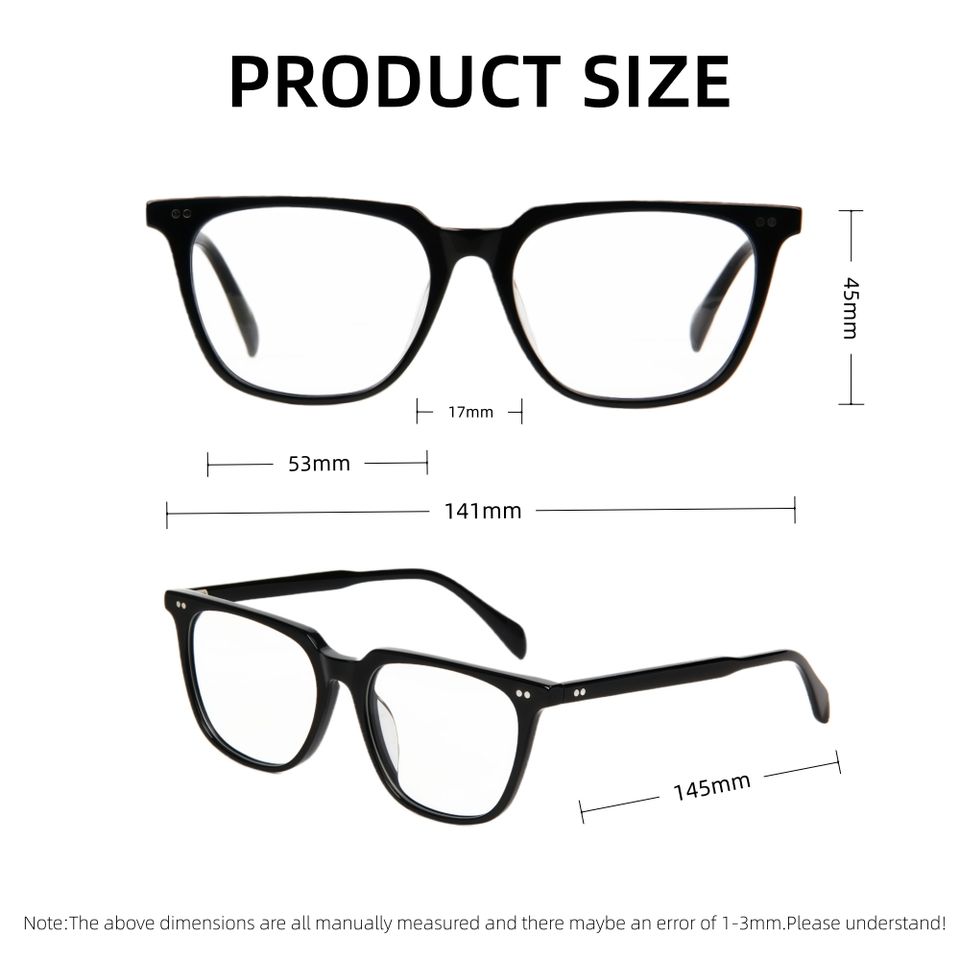 แว่นตาทรงสี่เหลี่ยมจัตุรัสกรอบอะซิเตทสีดำ ดีไซน์เรขาคณิต เรียบง่าย ทันสมัย ทนทาน ป้องกันการตกกระแทก มุมมองคมชัด