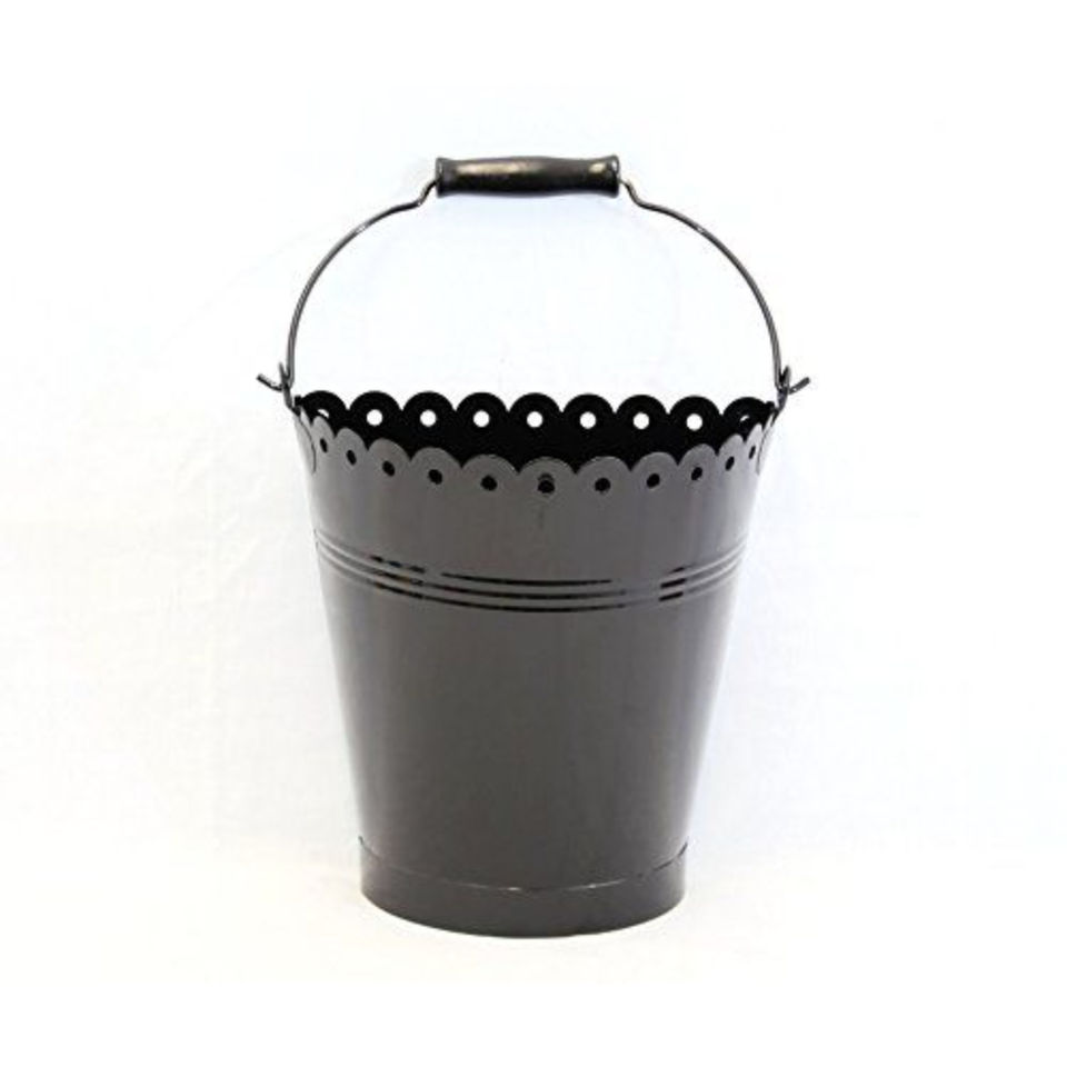 กระถางเหล็กชุบสังกะสีสีดำพร้อมหูหิ้ว สำหรับตกแต่งบ้านและสวน ใช้เก็บของหรือปลูกต้นไม้กลางแจ้ง