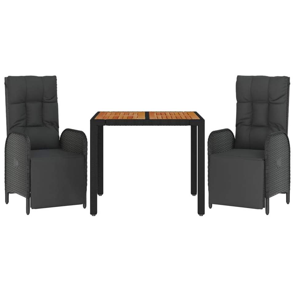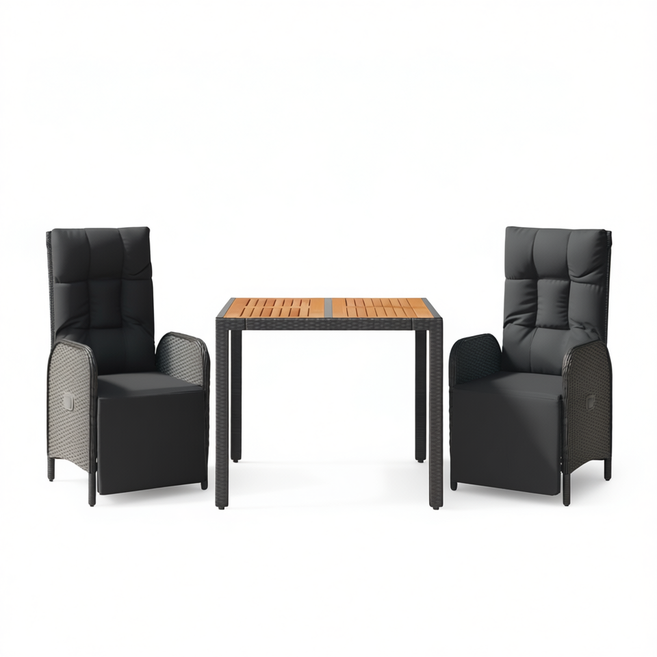 ชุดโต๊ะรับประทานอาหารหวายสีดำ 2 ที่นั่ง ท็อปไม้สัก เฟอร์นิเจอร์กลางแจ้ง ดีไซน์ร่วมสมัย ทนทานต่อสภาพอากาศ