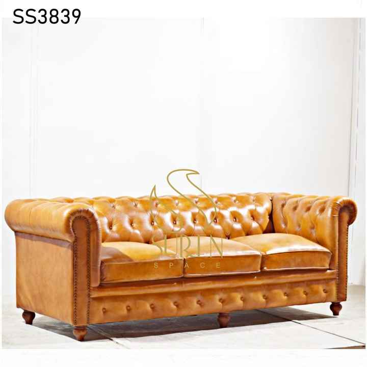 โซฟาหนังแท้สีดำสำหรับโรงแรม ดีไซน์สไตล์อินดัสเทรียล เหมาะสำหรับบ้านสไตล์ฟาร์มเฮาส์และห้องนั่งเล่น แบบสามที่นั่ง โฟมความหนาแน่นสูง