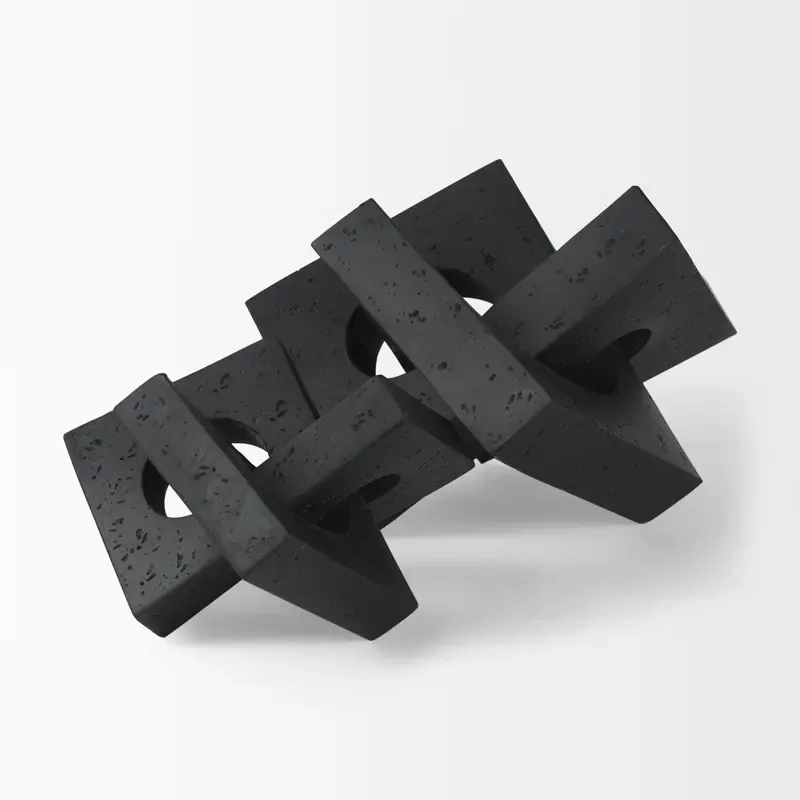 Black Geometric Interlocking Design Antique Silver-Plated Aluminium Polished Sculpture Art Home Decor