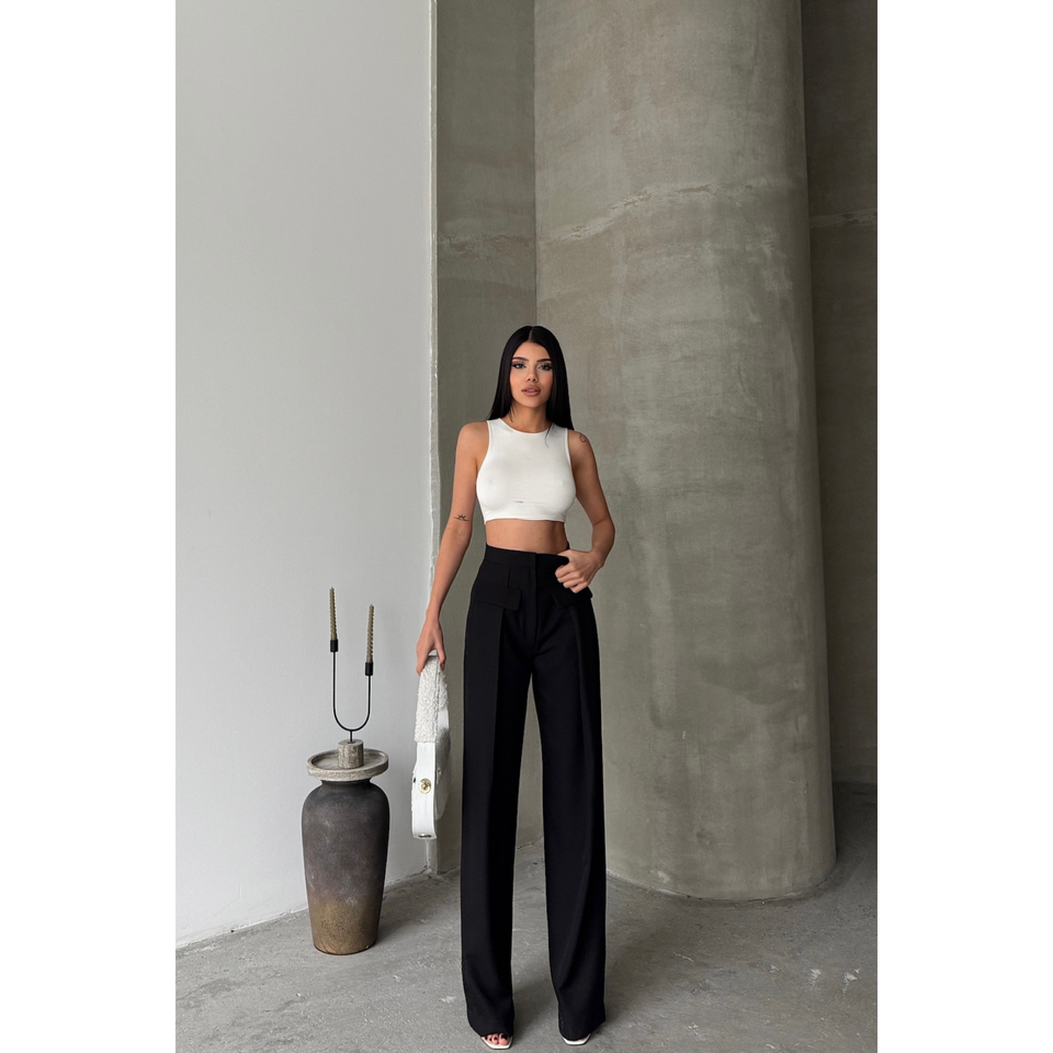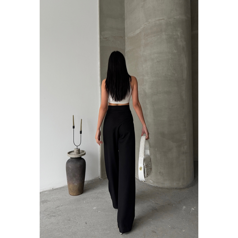 กางเกงขายาวทรงจีบกว้างสีดำสำหรับสาวๆ มีกระเป๋าแบบมีฝาปิด เอวยางยืด ระบายอากาศได้ดี เหมาะสำหรับใส่ทำงานในฤดูใบไม้ร่วง ลายทางหลากสี ไซส์ XL