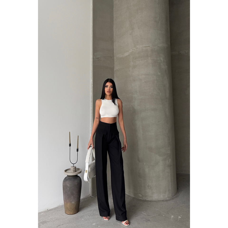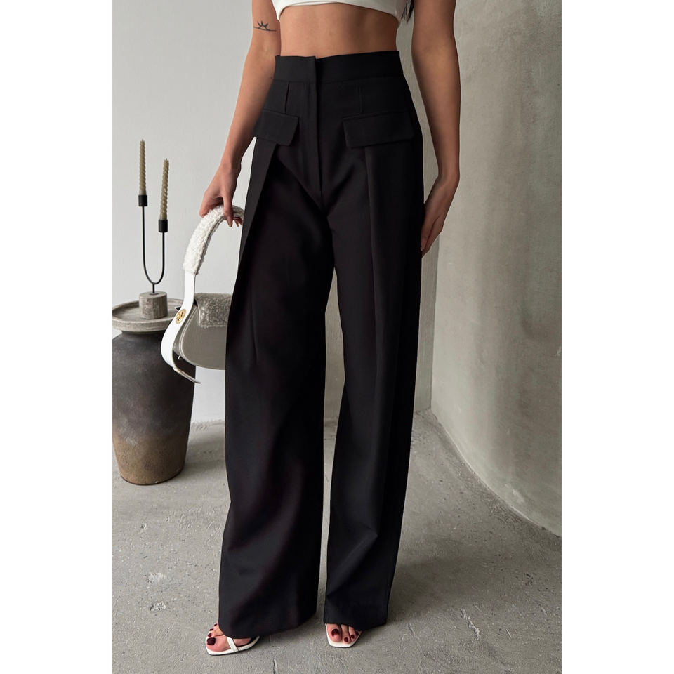 กางเกงขายาวทรงจีบกว้างสีดำสำหรับสาวๆ มีกระเป๋าแบบมีฝาปิด เอวยางยืด ระบายอากาศได้ดี เหมาะสำหรับใส่ทำงานในฤดูใบไม้ร่วง ลายทางหลากสี ไซส์ XL