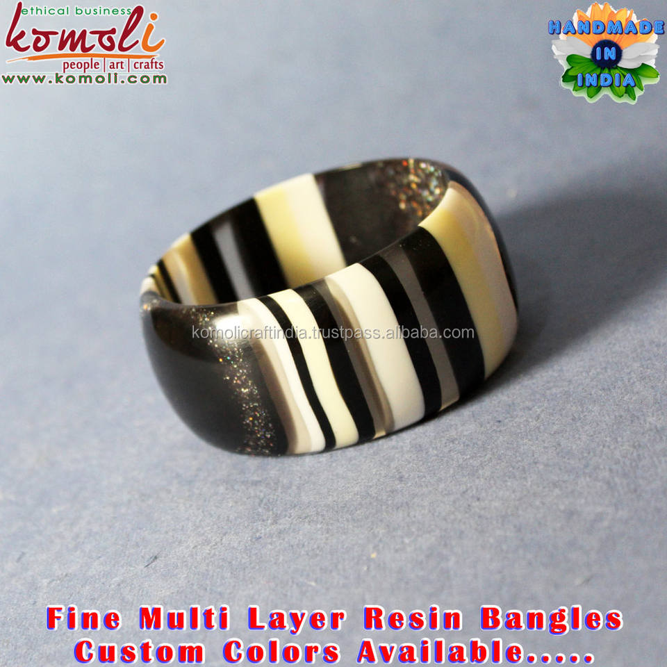กำไลเรซิ่นสีดำประกายวิบวับ หลายสี ลายทางซ้อนกัน กำไลข้อมือและกำไลข้อเท้า