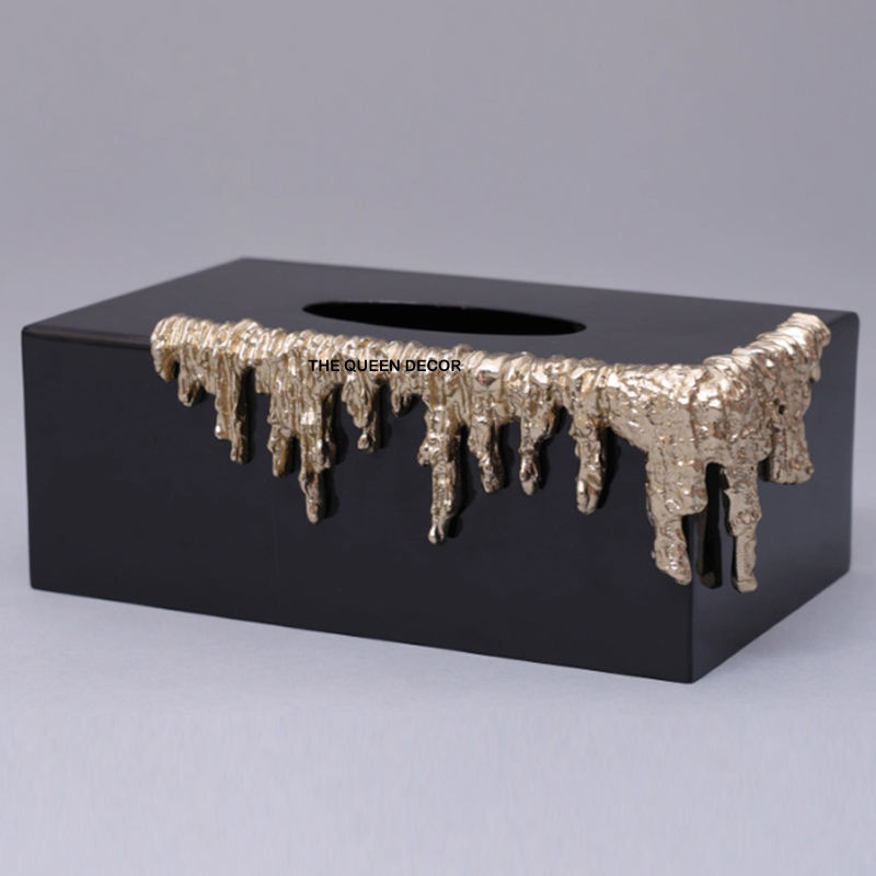 กล่องใส่กระดาษทิชชูสีดำมันวาวพร้อมดีไซน์ขอบสีทองสวยงามทันสมัยสำหรับตกแต่งบ้านสำนักงานโรงแรม