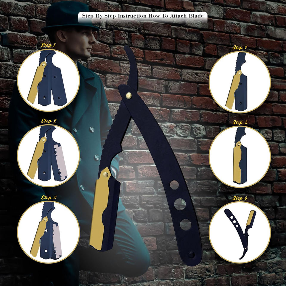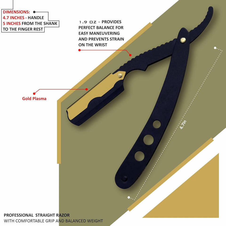 มีดโกนสำหรับร้านตัดผมสีดำ/ สีทอง100% สแตนเลสพร้อมด้วยใบมีดโกน10ใบโดยมีดโกน & Co