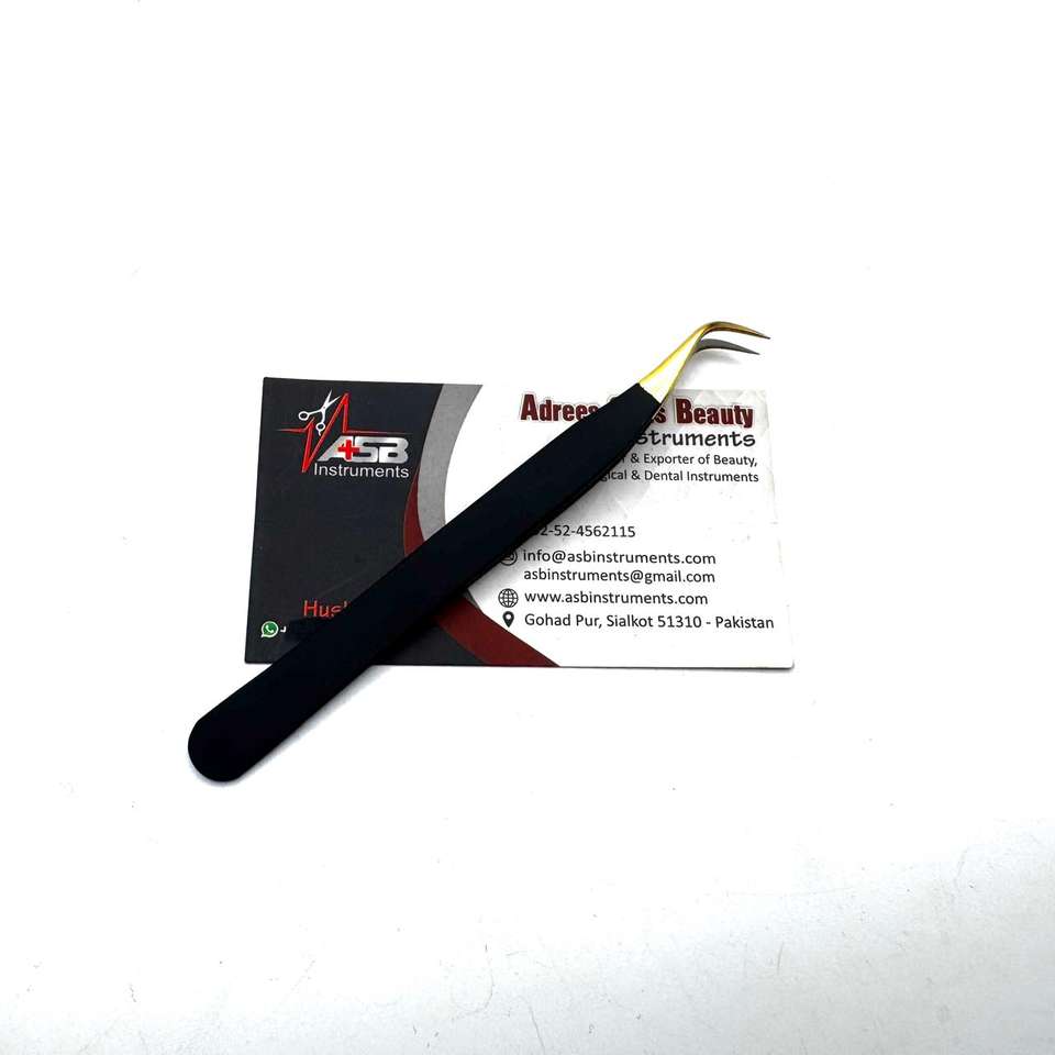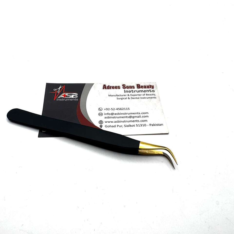 แหนบต่อขนตาสีดำสีทองพร้อมปลายไฟเบอร์อุปกรณ์ต่อเพื่อความงามงานพิมพ์โลโก้ตามสั่งขายส่ง