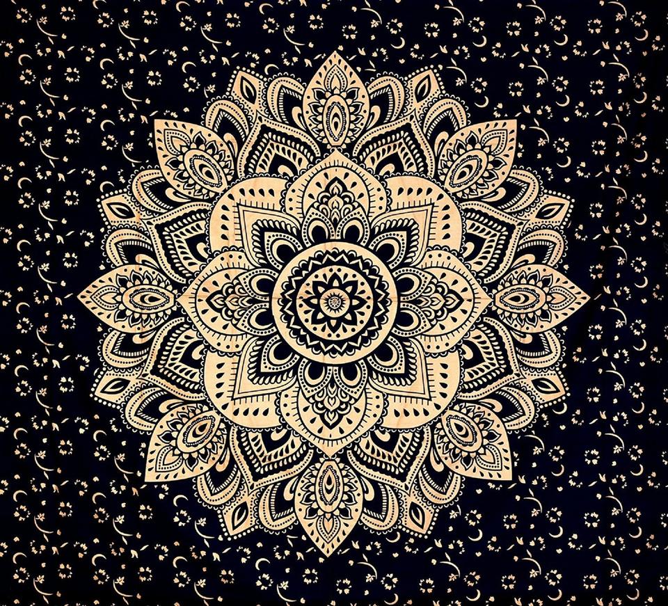 สีดําและทองดอกไม้Mandalaผ้านวมคลุมMandalaชุดเครื่องนอนQueenขนาดชาติพันธุ์Boho Doonaผ้าปูที่นอนผ้านวมคลุมชุด