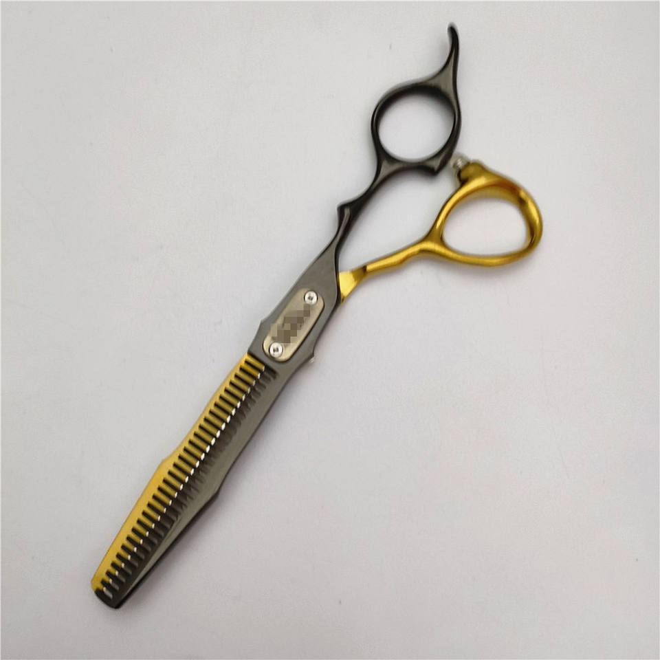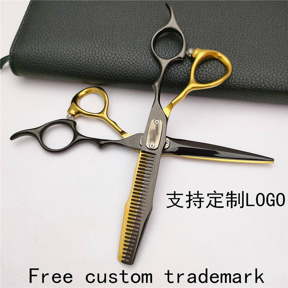 กรรไกรตัดผมสีดำลายเสือดาว 6.0 นิ้ว สแตนเลสสตีล ด้ามยาว รุ่น LPE-6.0