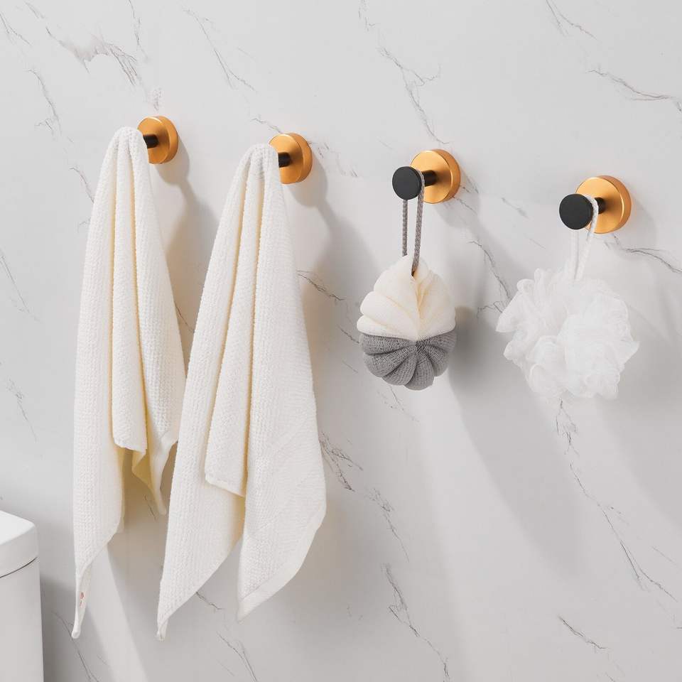 ตะขอแขวนผนังทรงกลมสีดำทอง แพ็ค 4 ชิ้น สำหรับแขวนเสื้อคลุม ใช้ได้กับตู้รองเท้า ตู้เสื้อผ้า ห้องน้ำ ห้องนอน