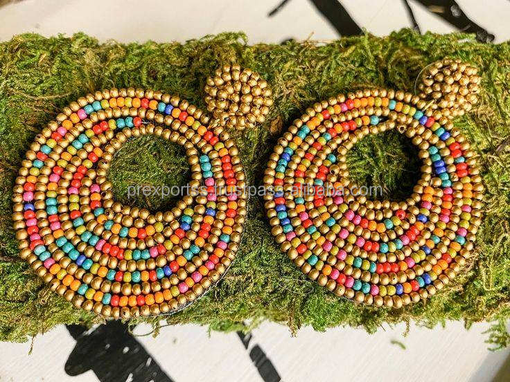ต่างหูห่วงลูกปัดสีทองเงินสีดำทำด้วยมือเครื่องประดับที่มีน้ำหนักเบาสำหรับผู้หญิงสำหรับงานปาร์ตี้ขายส่ง