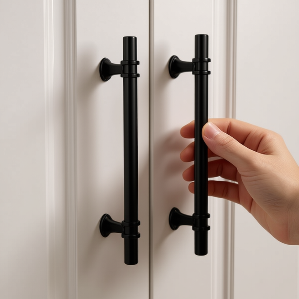 มือจับประตูตู้แบบทีบาร์โลหะแบบดั้งเดิมสำหรับลิ้นชัก อุปกรณ์ฮาร์ดแวร์เฟอร์นิเจอร์ สีดำ