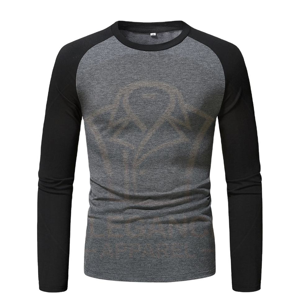 เสื้อยืดคอกลมแขนยาวสีดำเทาผ้าคอนทราสต์สีดำดีไซน์ที่แตกต่างใส่สบาย