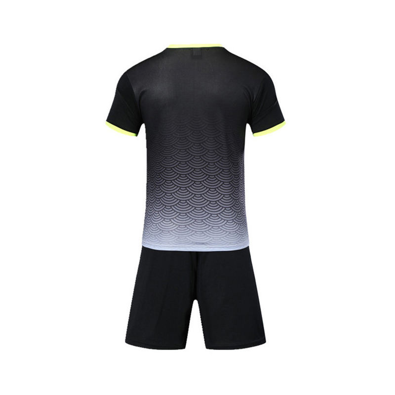 ชุดฟุตบอลผู้ชายสีดำและสีเทาไล่เฉดสี - เสื้อเจอร์ซีย์ระบายอากาศแบบซับลิเมชั่นพร้อมลายสเกลและกางเกงกีฬาเข้าชุด