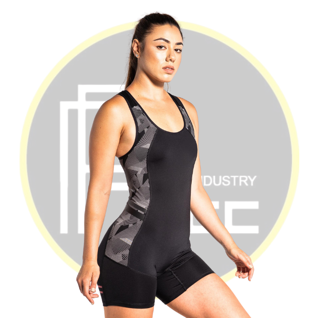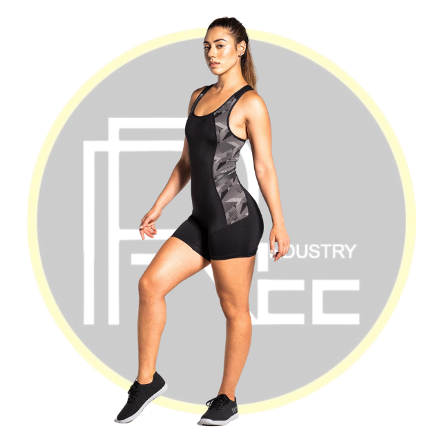 ชุดหมีออกกำลังกายชิ้นเดียวสีดำเทาสำหรับผู้หญิงบอดี้สูทแขนกุดสำหรับเล่นกีฬายิมฟิตเนส