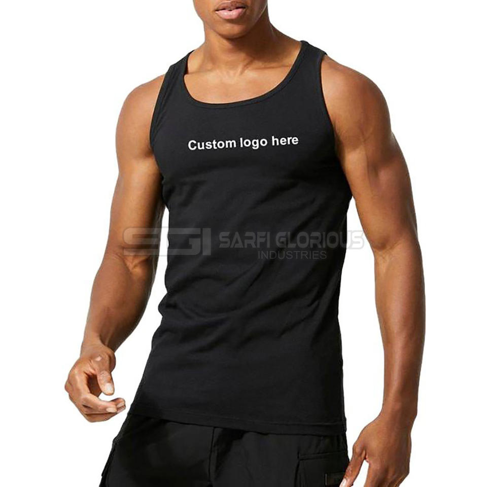 เสื้อกล้ามออกกำลังกายผู้ชายสีดำ ผ้าคอตตอนผสมสแปนเด็กซ์ ยืดหยุ่นสูง ระบายอากาศได้ดี