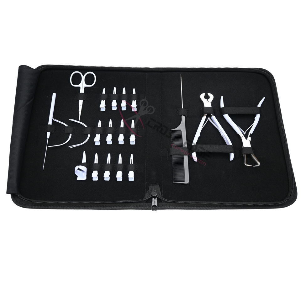 ชุดอุปกรณ์ต่อผมสีดำ พร้อมแหวนไมโคร คีมถอดลูกปัด คีมกดเทป คีมเกี่ยว คีมห่วง อุปกรณ์จัดแต่งทรงผม