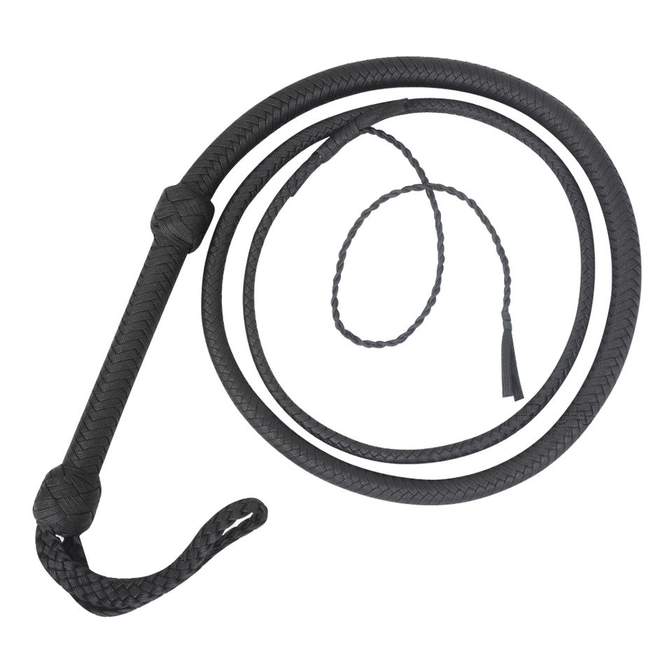 แส้หนังวัวทำมือสีดำ ขนาด 04 ถึง 16 ฟุต 16 เส้นถัก หนังวัวแท้ แบบสั่งทำพิเศษ โครงสร้างแบบมีที่รองและที่จับ สีเข้ม