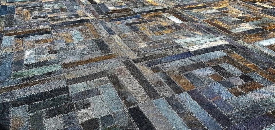 พรมหนังวัวแท้ทำมือลายปะติดปะต่อ ขนแท้บนหนัง พรมขนสัตว์หรูหราสำหรับบ้านและสำนักงาน
