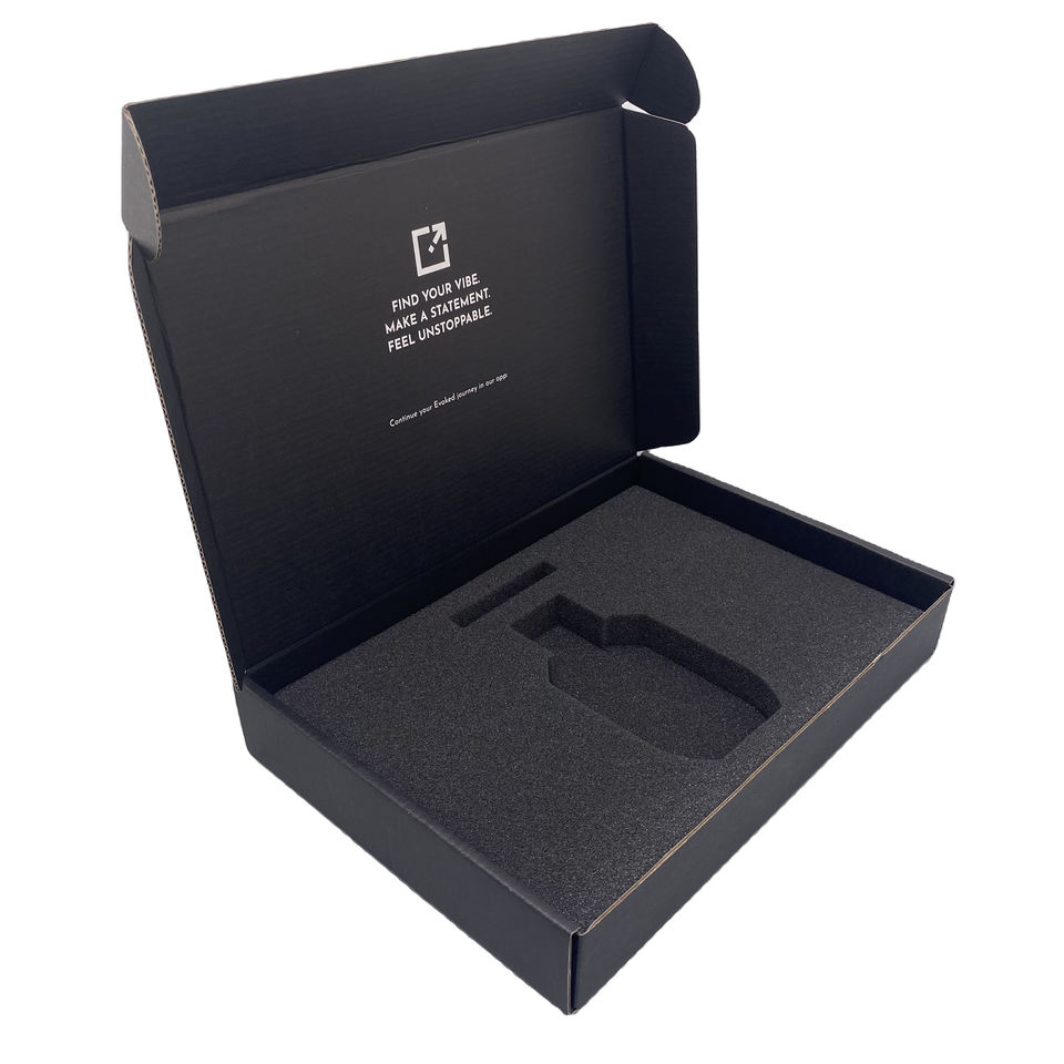 Black Hard Cardboard Corrugated Mailer Folders Perfume Packaging with Sponge Insert Matt Lamination Custom White Logo Recyclable