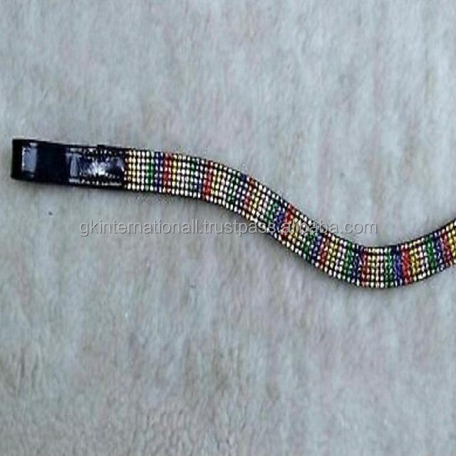 สีดำฮาวานาสีน้ำตาลหรือสีน้ำตาลเข้มหนังม้าคิ้ววงที่มี8แถวตกแต่งรูปแบบรุ้งคริสตัลและหินโซ่