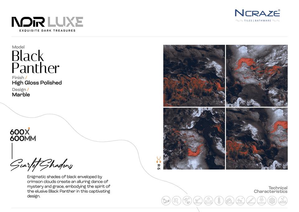 กระเบื้องพอร์ซเลนเคลือบมันเงาสีดำมันวาวสูงกันน้ำ600x600มม. กันลื่นกันไฟสำหรับอาคารสำนักงานวิลล่าบ้านนาเนะ