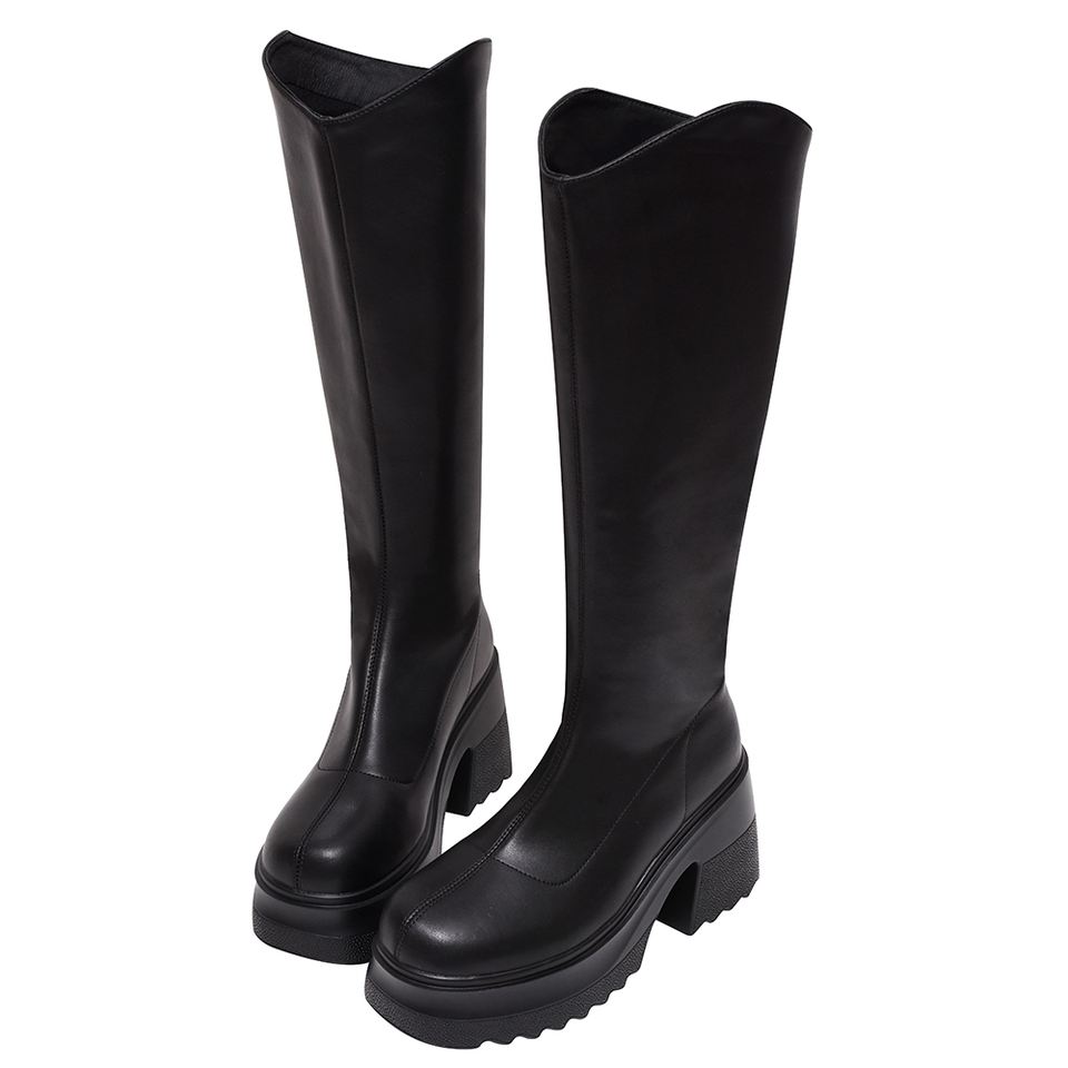 รองเท้าบูทส้นสูงสีดำ ดีไซน์สำหรับน่องกว้าง
