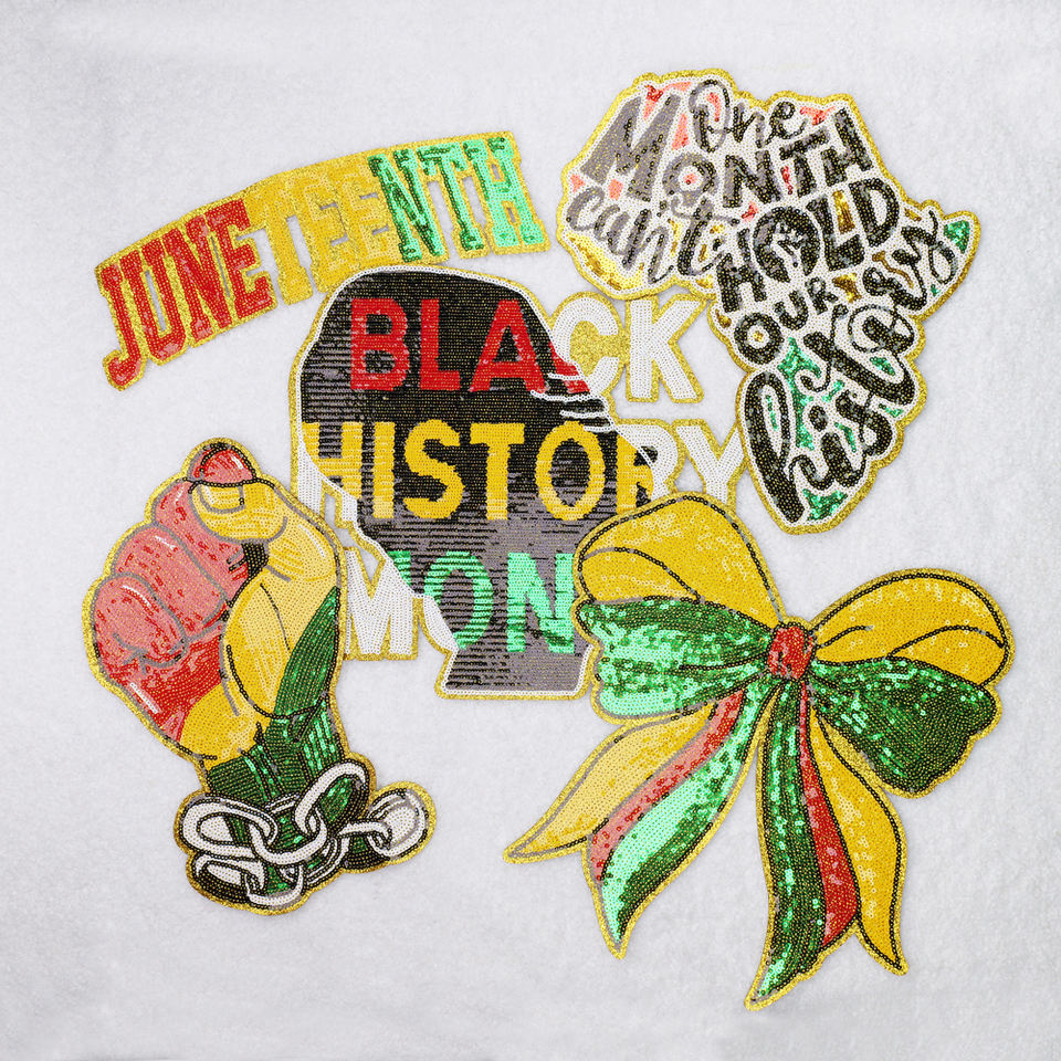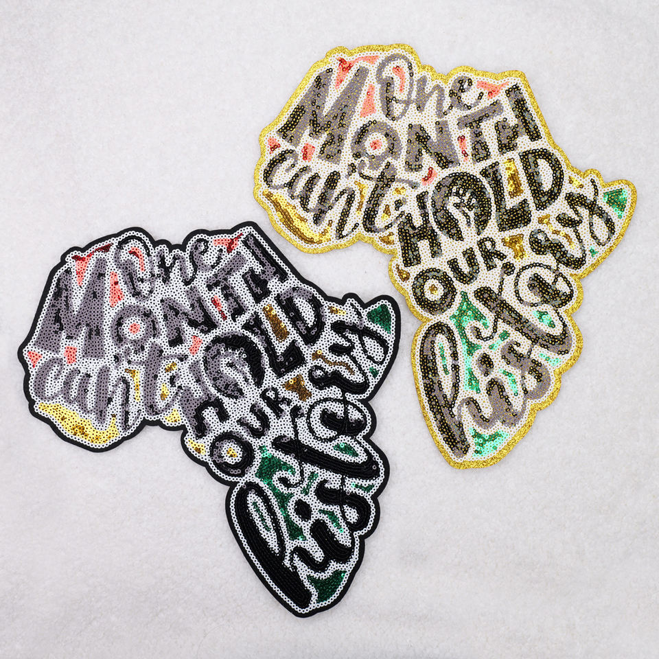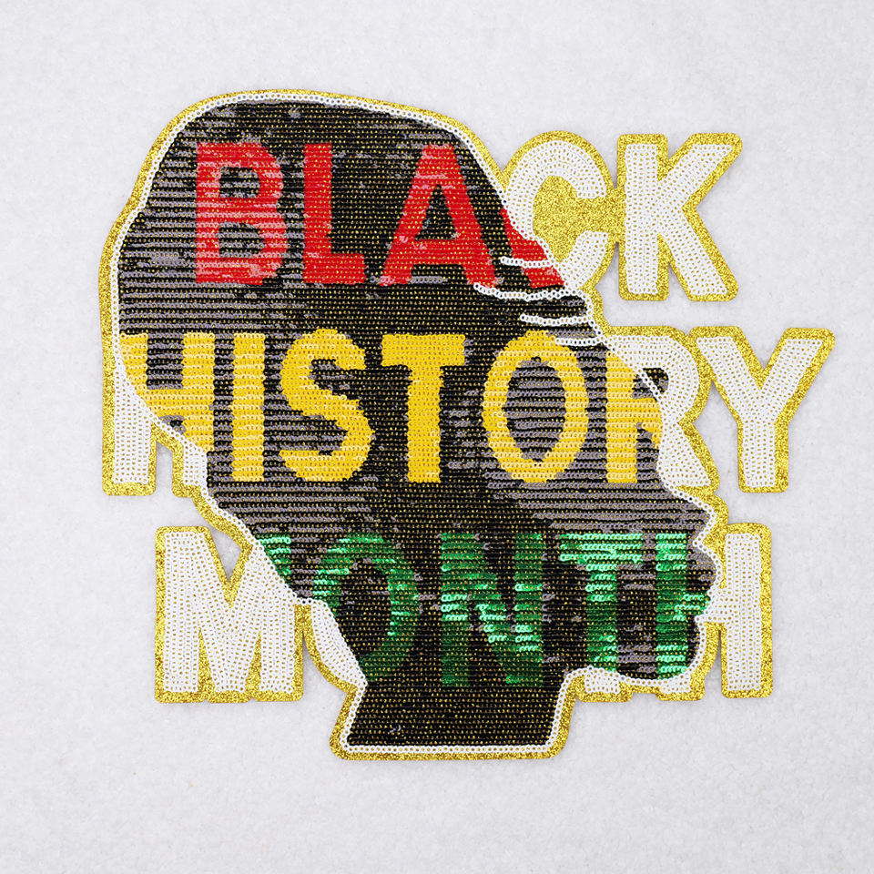 แผ่นปะเลื่อมปักลายตัวอักษรสำหรับผู้หญิงแผนที่ประวัติศาสตร์สีดำแผ่นรีดติดแบบติดออกแบบได้ตามต้องการสีดำสำหรับเดือนประวัติศาสตร์สีดำ