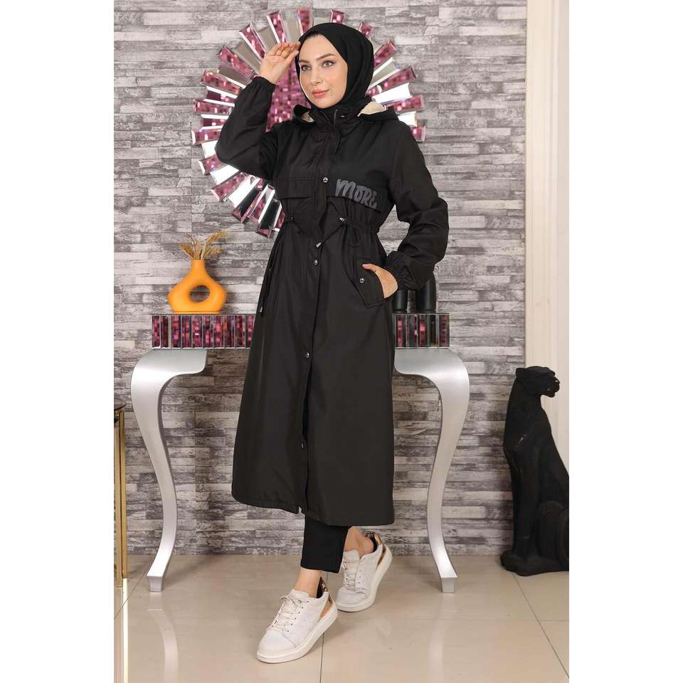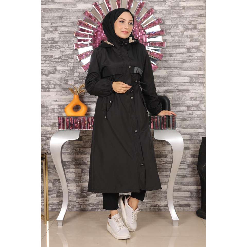 เสื้อโค้ทเทรนช์โค้ทลำลองมีฮู้ดสีดำ รุ่นเมก้าเมอร์เชนท์ ยาว 15900