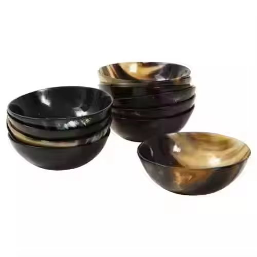 ชามฮอร์นสีดำเงาธรรมชาติขัดมันควายเขาชามด้วยงานฝีมือรูปพระจันทร์เสี้ยว