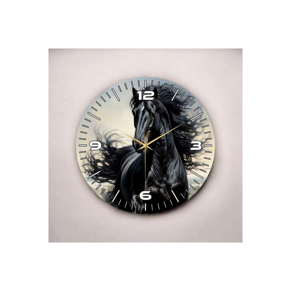 นาฬิกาแขวนผนังโต๊ะไม้เงียบลายสัตว์ม้าสีดำของขวัญ50ซม. สำหรับคนรักสัตว์