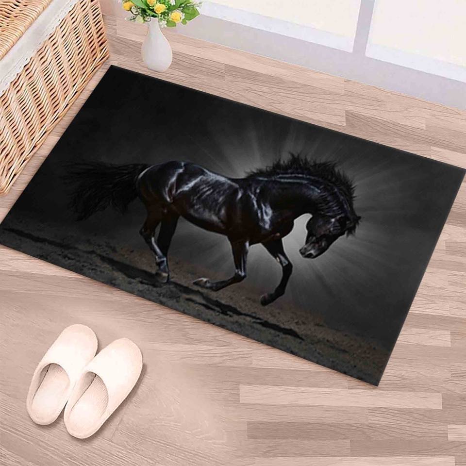 พรมลายม้าสีดำ พรมพิมพ์ลาย ทำความสะอาดง่าย ดีไซน์สไตล์บ้านไร่ พร้อมพรมขนนุ่ม