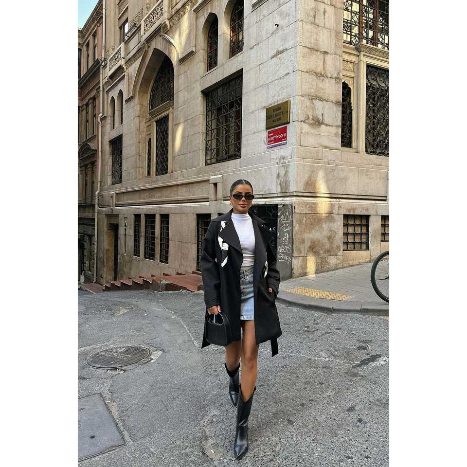 เสื้อโค้ทหนังยาวสำหรับผู้หญิง แบรนด์ Black Hosanna บุด้วยผ้าฝ้าย ติดกระดุมแถวเดียว ไซส์พลัส ลายพิมพ์ตกแต่งสำหรับฤดูหนาว แบบสั่งทำพิเศษ