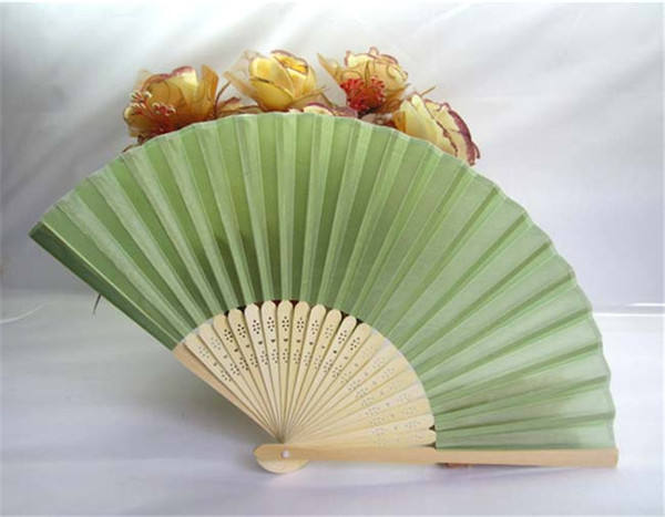 พัดมือพับได้ทำจากผ้าไหมเทียมสีดำ ลายไม้ไผ่ ของชำร่วยงานแต่งงาน ของขวัญงานเลี้ยงฉลองเด็กแรกเกิด พร้อมถุงของขวัญ