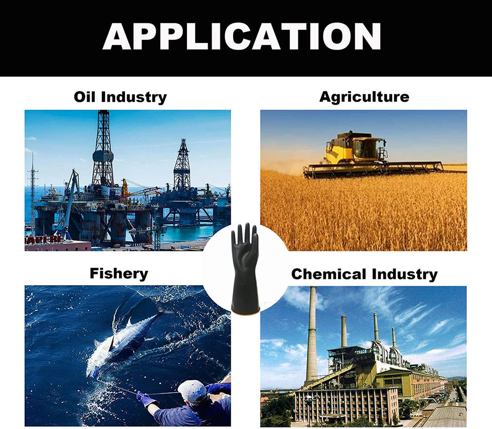 ถุงมือยางลาเท็กซ์สีดำสำหรับงานอุตสาหกรรม ป้องกันกรดด่าง ทนสารเคมี ขนาด 12 นิ้ว น้ำหนัก 100 กรัม ข้อมือยืดหยุ่น