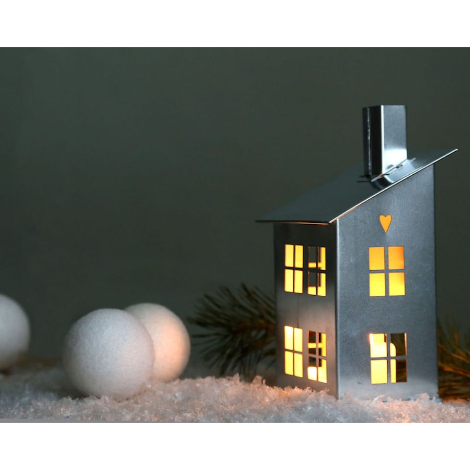 โคมไฟเหล็กสีดำรูปทรงหมู่บ้านคริสต์มาส ของตกแต่งโต๊ะเทศกาล ของตกแต่งบ้าน ของขวัญตกแต่งคริสต์มาส