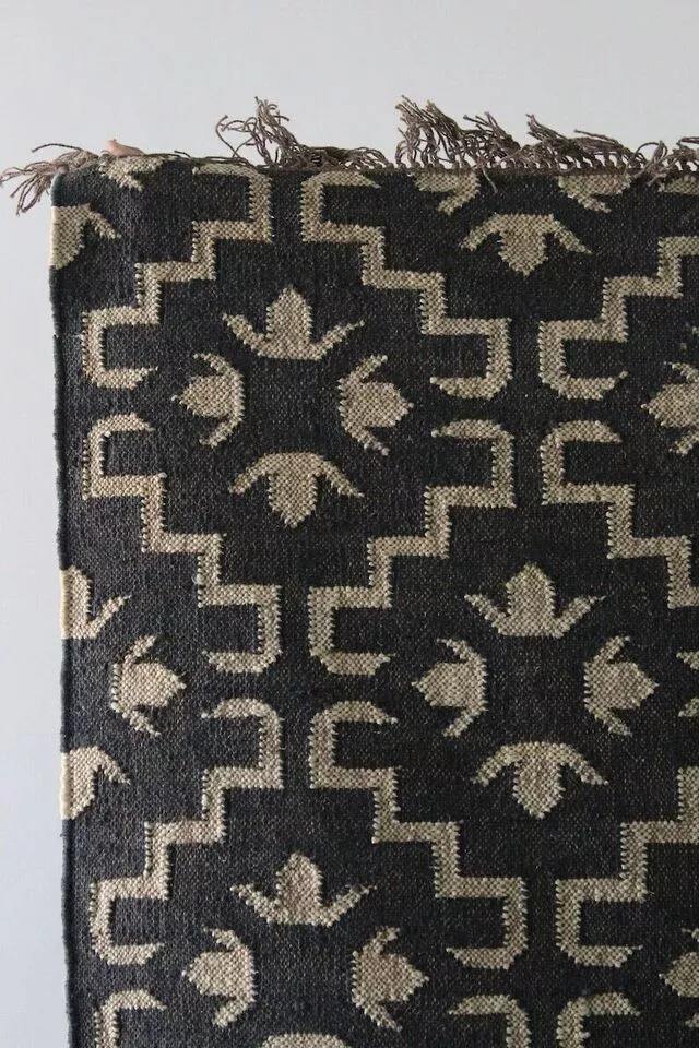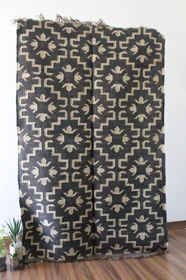 พรมปอกระเจาสีดำลายดอกไม้ราคาประหยัดสำหรับตกแต่งบ้านงานทำมือตกแต่งพื้นสำหรับห้องนั่งเล่นห้องนอนโรงแรมแขก