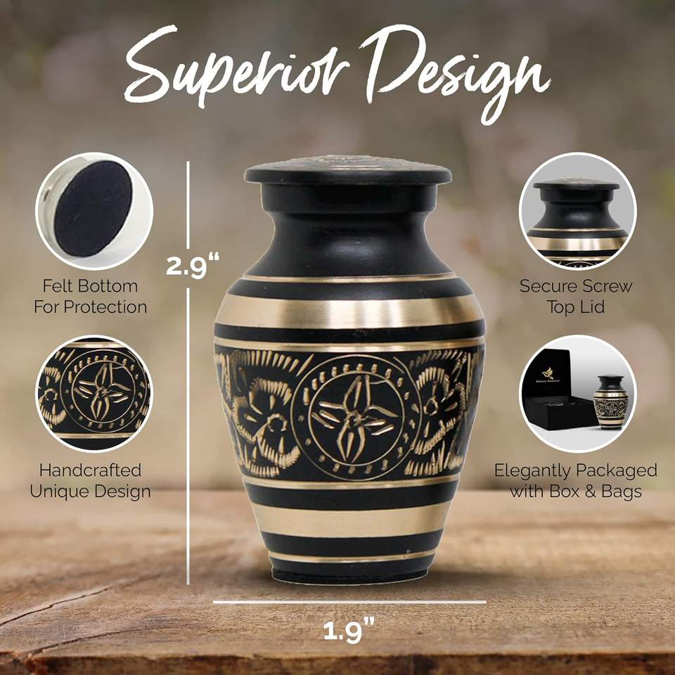 โกศที่ระลึกสีดําสําหรับเถ้ามนุษย์ - โกศเพลิงศพสําหรับผู้หญิง ชุด 4 - เกียรติยศคนที่คุณรักด้วยโกศขนาดเล็กสําหรับเถ้าผู้ใหญ่
