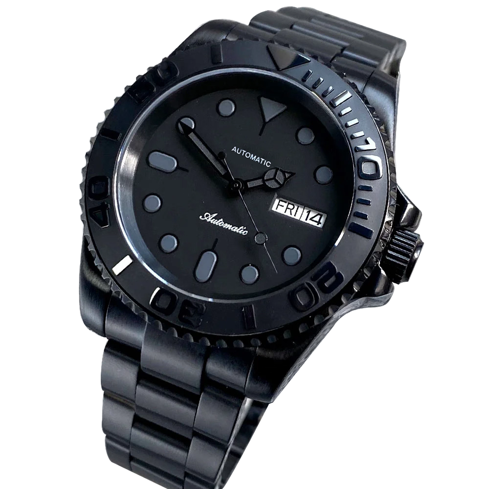 แบล็คไนท์ 40 มม.นาฬิกาจักรกล สายเหล็กสามข้อต่อ ปฏิทินคู่ ตัวชี้แซฟไฟร์ มิโยตะ 200 ม.