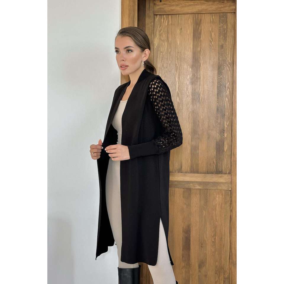 เสื้อคาร์ดิแกนถักสีดำสำหรับผู้หญิง สไตล์มินิมอล ผ้าบางเบา แขนยาว แฟชั่นโค้ท