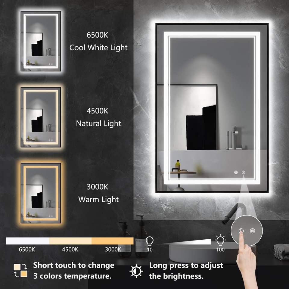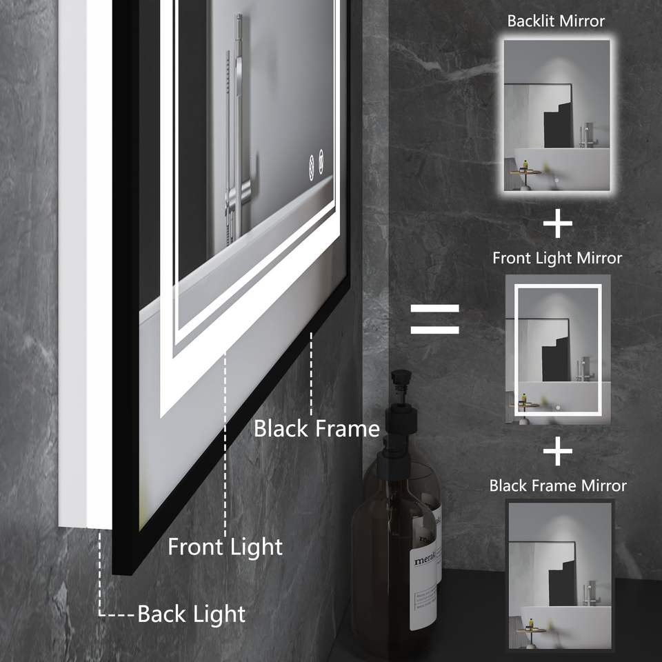 กระจกห้องน้ำ LED สีดำมีแถบกันฝ้าสองชั้นสำหรับใช้ในวิลล่าและร้านเสริมสวย