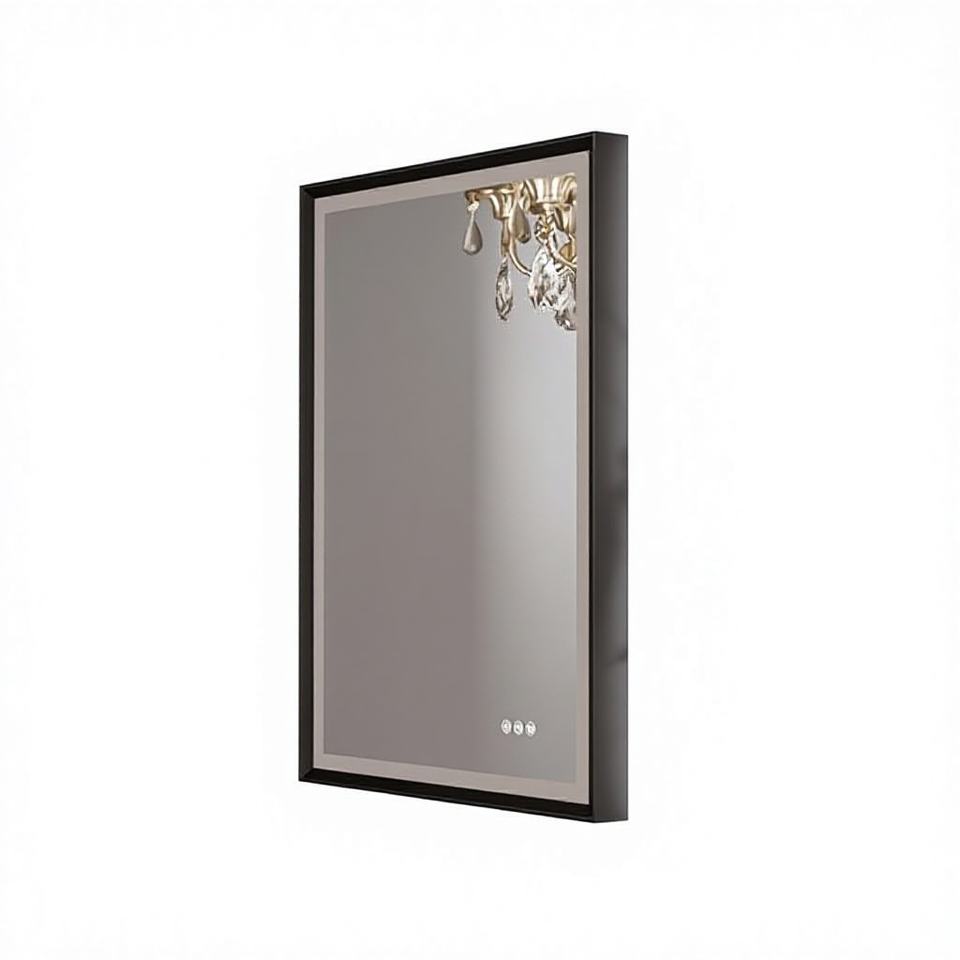 Modern Illuminated Black LED Hotel Use Bathroom Vanity Mirror Frontlit Backlit Anti-Fog Lights Beveled Frame 3 Color Options