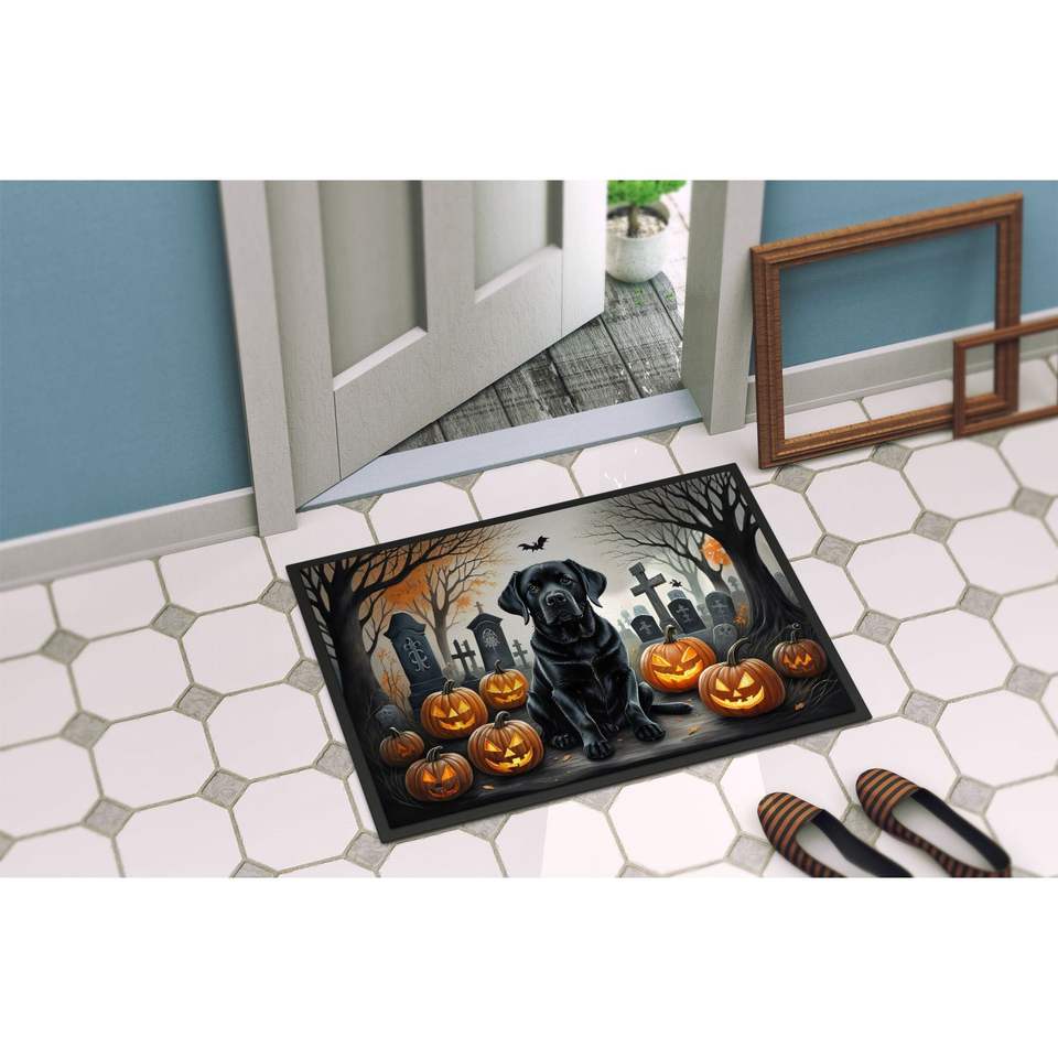 พรมเช็ดเท้าฮาโลวีนน่ากลัวลายลาบราดอร์รีทรีฟเวอร์สีดำไม่ลื่นซักได้ต่ำพรมปูพื้นทางเข้าในร่ม/กลางแจ้ง24ชม. X 36วัตต์