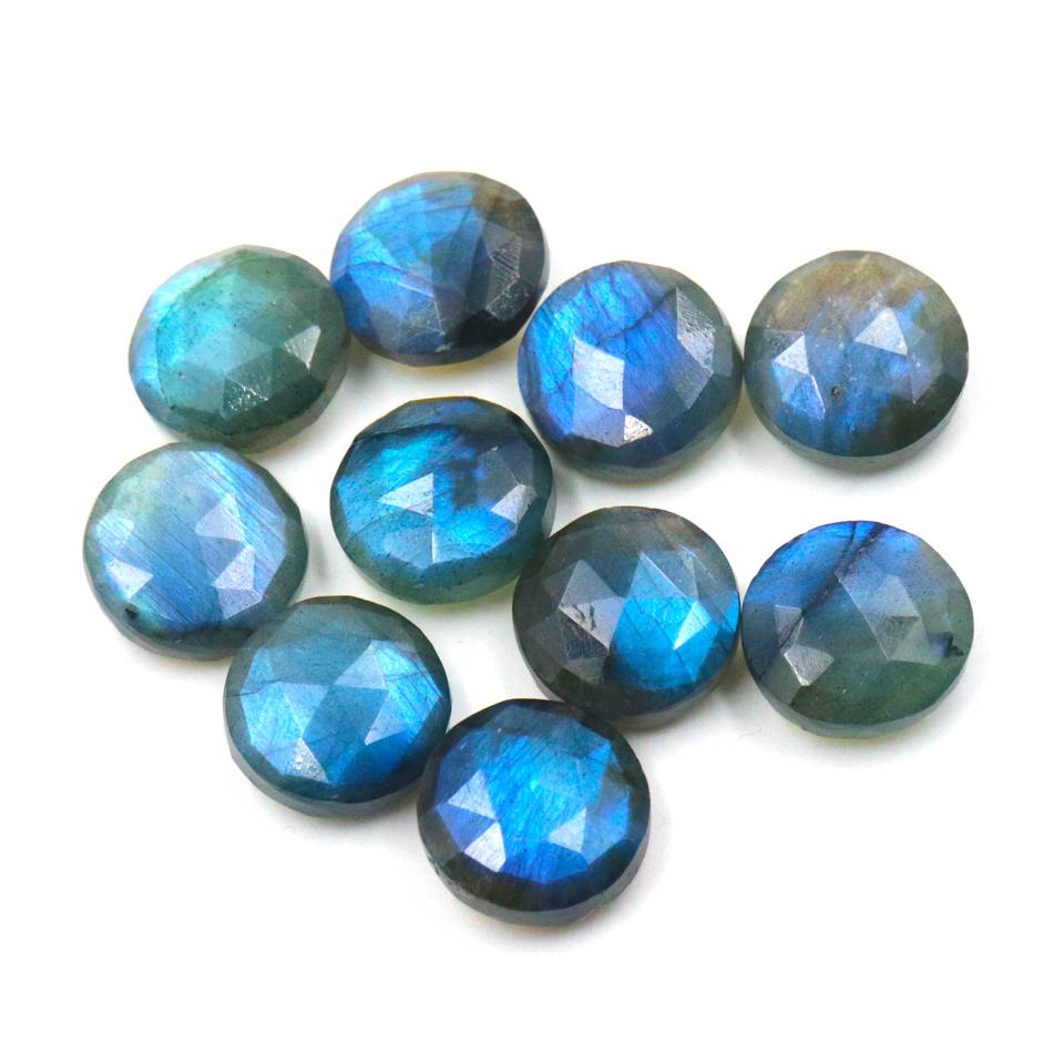 ลาบราดอไรต์สีดำทรงกลมเจียระไนแบบแฟลช ขนาด 13-15 มม. 10 ชิ้น ลาบราดอไรต์ธรรมชาติเจียระไนแบบบริโอเล็ตสำหรับทำเครื่องประดับ