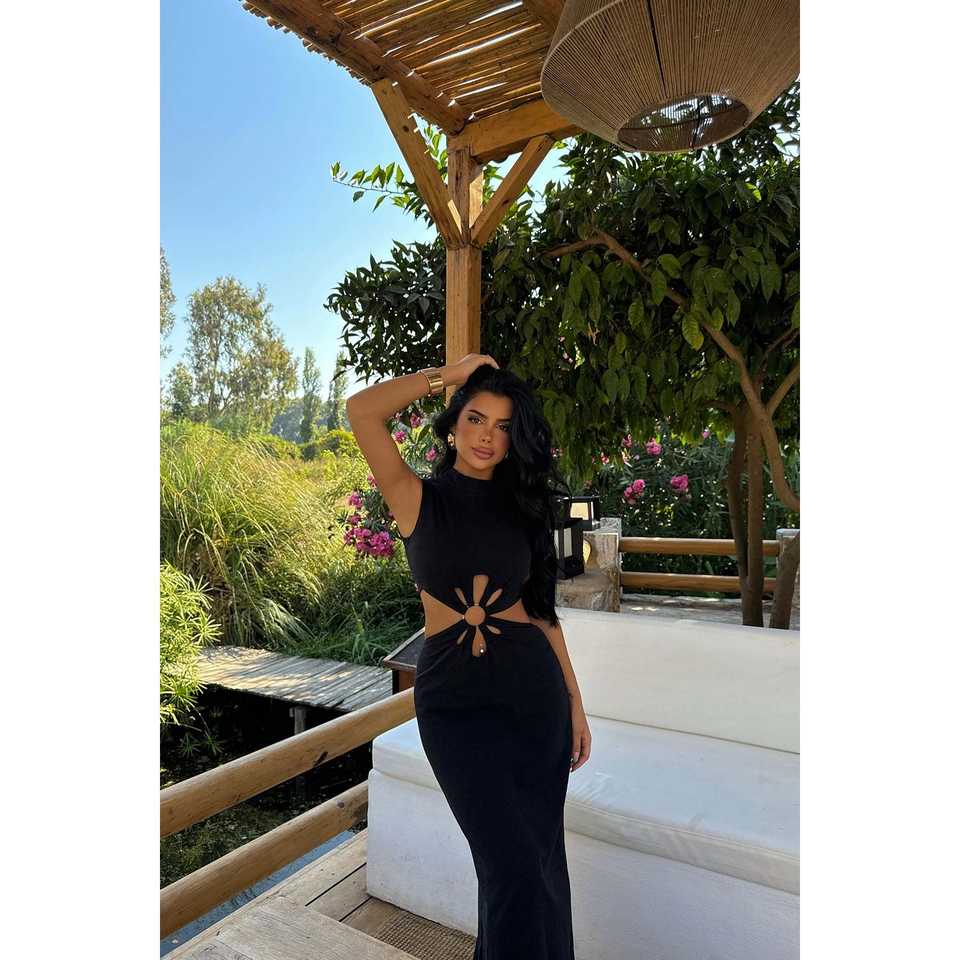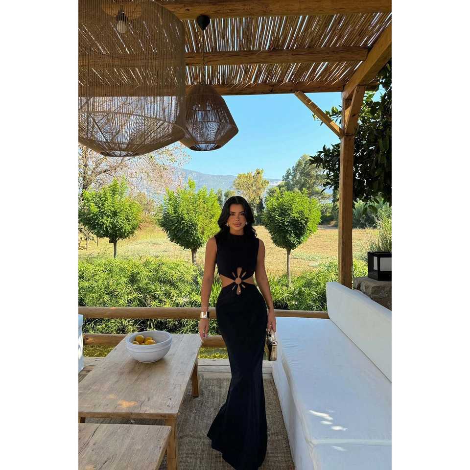 เดรสผ้าลินินสีดำ แขนพอง ทรงยาว ดีไซน์เรียบหรู ใส่ได้ทั้งแบบทางการและลำลอง ไซส์เดียว/XS/6XL คุณภาพสูง ตัดเย็บตามสั่ง