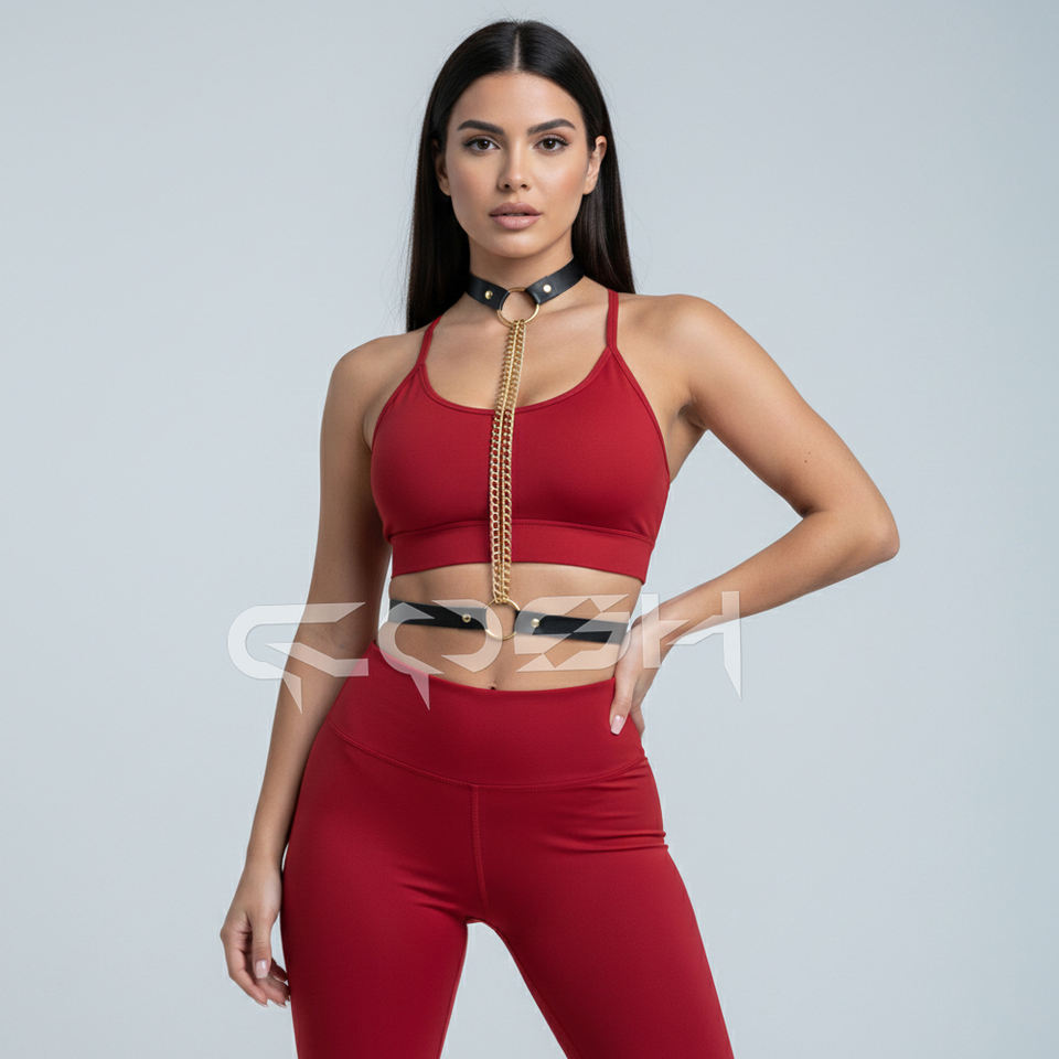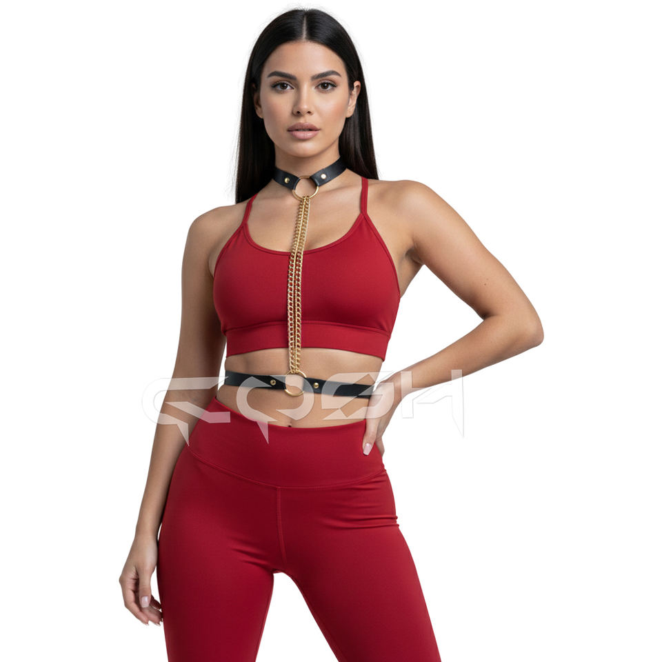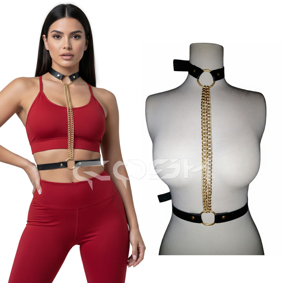 ชุดชั้นในแบบสายรัดตัวหนังสีดำพร้อมโซ่ทองคู่แบบปรับได้