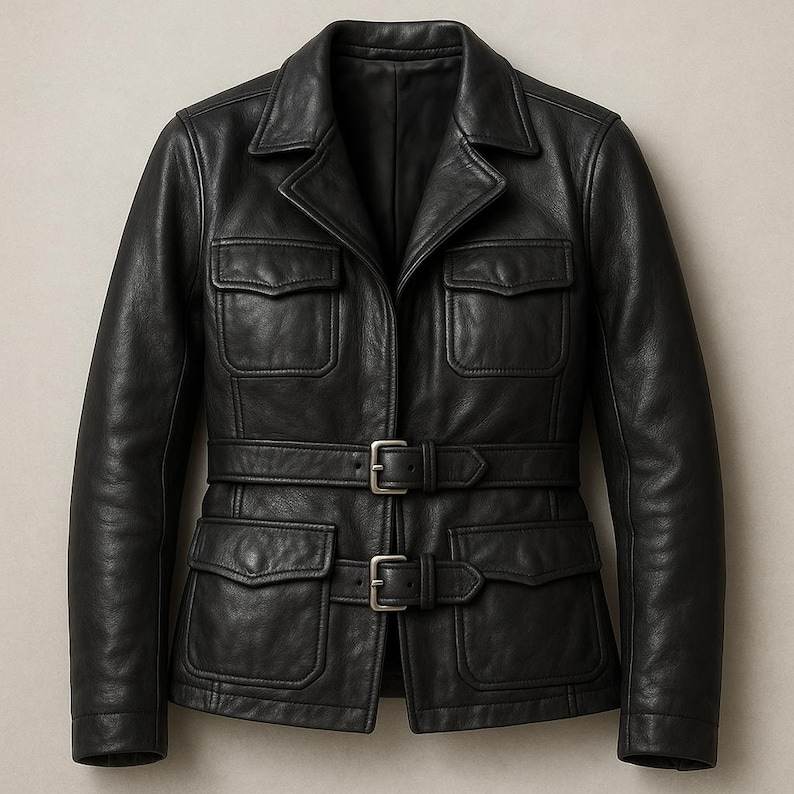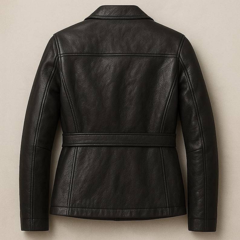 เสื้อโค้ทหนังสีดำสำหรับผู้หญิง แจ็คเก็ตหนังแท้คลาสสิก ทรงเข้ารูปทันสมัย เสื้อคลุมสำหรับใส่ภายนอก ไอเดียของขวัญวันฮาโลวีน เสื้อผ้าสำหรับฤดูใบไม้ร่วงและฤดูหนาว